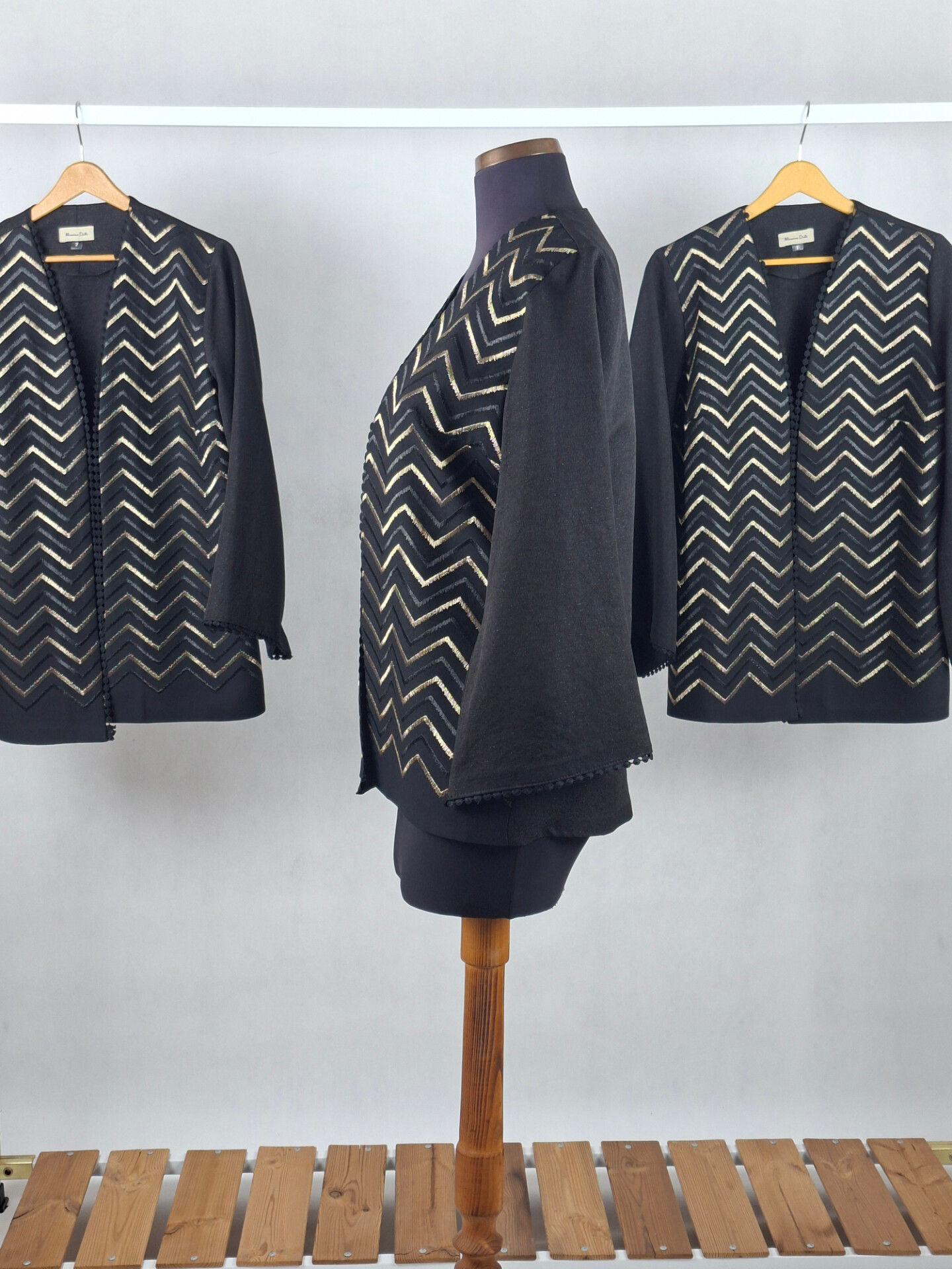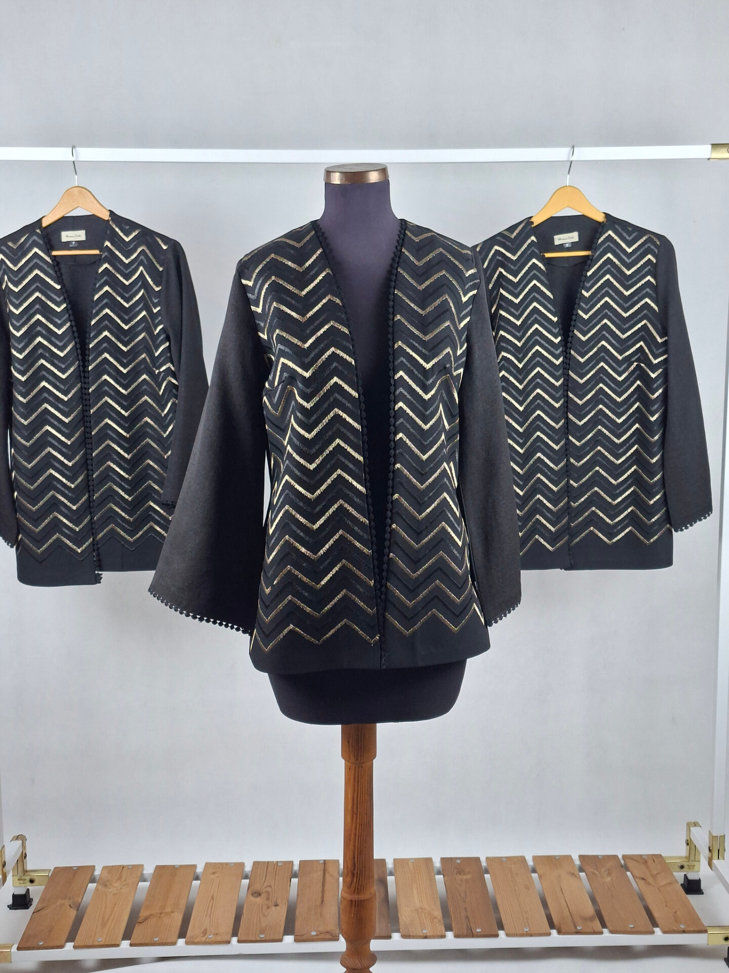 🩵کت زنانه کد 506 ✅️سایز=1/2 ✔️سایز =1 💯مناسب 36 الی 42 ✨️دور سینه 100 ✨️دور باسن 104 ✔️سایز =2 💯مناسب 44 الی 46 ✨️دور سینه108 ✨️دور باسن112 ✅️قد کار =72 ✅️رنگ =مشکی طلایی جنس=کتان لمه