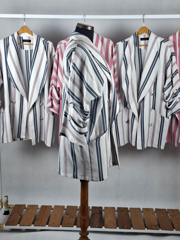 رنگ: صورتی راه راه و سرمه ای راه راه